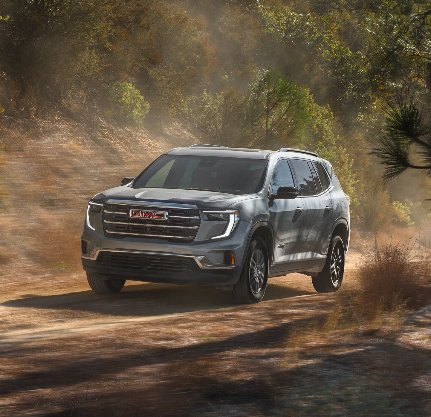 The GMC Acadia midsize SUV and full-size Yukon/Yukon XL models provide spacious seating for up to seven or eight passengers, depending on configuration.