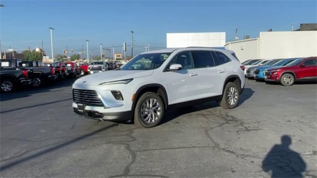 Price advertised is subject to qualifying for all applicable rebates. If you're looking for a new car, truck or SUV near St. Louis or Edwardsville, then look no further than Steve Schmitt Inc. At our Highland dealership, we have a large variety of Chevy, Buick, and GMC models, all just ripe for the picking. Steve Schmitt has delivered four generations of Customer Service...right here in Highland! Steve Sr. Plays an active role in the dealership as well as the community, and Steve Jr. Manages the day-to-day operations. At Steve Schmitt Chevy Buick GMC, it is more than a name on a sign...it is our family looking forward to exceeding your family's expectations! This vehicles includes the following features Power Package (110-Volt Power Outlet, 2nd Row 1-Touch Flat Folding Seat, 3rd Row 60/40 Power Split-Folding Bench, Head-Up Display, Heated Wiper Park, Inside Rearview Auto-Dimming Rear Camera Mirror, Memory Settings, and Universal Home Remote), 12 Speakers, 3rd row seats: split-bench, 4-Wheel Disc Brakes, ABS brakes, Air Conditioning, Alloy wheels, AM/FM radio: SiriusXM with 360L, Apple CarPlay/Android Auto, Auto High-beam Headlights, Auto-dimming door mirrors, Auto-dimming Rear-View mirror, Automatic temperature control, Bose Premium 12-Speaker Audio System, Brake assist, Bumpers: body-color, Compass, Delay-off headlights, Driver 4-Way Power Lumbar Seat Adjuster, Driver 8-Way Power Seat Adjuster, Driver door bin, Driver vanity mirror, Dual front impact airbags, Dual front side impact airbags, Electronic Stability Control, Emergency communication system: OnStar and Buick connected services capable, Four wheel independent suspension, Front anti-roll bar, Front Bucket Seats, Front Center Armrest, Front dual zone A/C, Front Passenger 4-Way Power Lumbar Seat Adjuster, Front Passenger 6-Way Power Seat Adjuster, Front reading lights, Fully automatic headlights, Heated door mirrors, Heated Driver & Front Passenger Seats, Heated front seats, Heated steering wheel, Illuminated entry, Leather steering wheel, Leatherette Seat Trim, Low tire pressure warning, Navigation System, Occupant sensing airbag, Outside temperature display, Overhead airbag, Overhead console, Panic alarm, Passenger door bin, Passenger vanity mirror, Power door mirrors, Power driver seat, Power Liftgate, Power passenger seat, Power steering, Power windows, Premium audio system: Buick Infotainment System, Radio data system, Radio: Infotainment Center, Rear air conditioning, Rear anti-roll bar, Rear reading lights, Rear side impact airbag, Rear window defroster, Rear window wiper, Remote keyless entry, Security system, SiriusXM w/360L Trial Subscription, Speed control, Speed-sensing steering, Spoiler, Steering wheel mounted audio controls, Tachometer, Telescoping steering wheel, Tilt steering wheel, Traction control, Trip computer, Turn signal indicator mirrors, Variably intermittent wipers, Vertical Cargo Net (LPO), Voltmeter, Wheels: 20 Alloy w/Medium Android Finish, Wireless Apple CarPlay, and Wireless Google Android Auto.