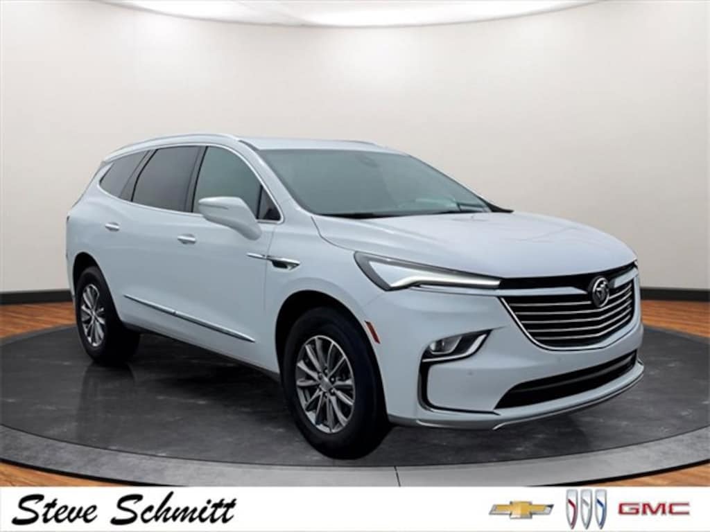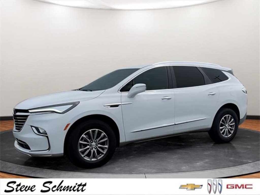 2022 Buick Enclave Essence Summit White Clean CARFAX. CARFAX One-Owner. Odometer is 25899 miles below market average! 18/26 City/Highway MPGIf you're looking for a new car, truck or SUV near St. Louis or Edwardsville, then look no further than Steve Schmitt Inc. At our Highland dealership, we have a large variety of Chevy, Buick, and GMC models, all just ripe for the picking. Steve Schmitt has delivered four generations of Customer Service...right here in Highland! Steve Sr. Plays an active role in the dealership as well as the community, and Steve Jr. Manages the day-to-day operations. At Steve Schmitt Chevy Buick GMC, it is more than a name on a sign...it is our family looking forward to exceeding your family's expectations! This vehicles includes the following features Buick Interior Protection Package (LPO) (3rd Row All-Weather Floor Mats, All-Weather Cargo Mat (LPO), and All-Weather Floor Mats), Preferred Equipment Group 1SL (Front & Rear Park Assist and Heated Steering Wheel), 18 Aluminum Wheels, 3.49 Axle Ratio, 3rd row seats: split-bench, 4-Wheel Disc Brakes, 6 Speakers, 6-Speaker Audio System Feature, 6-Way Power Front Passenger Seat Adjuster, 7-Passenger Seating, 8-Way Power Driver Seat Adjuster, ABS brakes, Air Conditioning, Alloy wheels, AM/FM radio: SiriusXM with 360L, Auto High-beam Headlights, Auto-dimming door mirrors, Auto-dimming Rear-View mirror, Automatic temperature control, Brake assist, Bumpers: body-color, Compass, Delay-off headlights, Driver door bin, Driver vanity mirror, Dual front impact airbags, Dual front side impact airbags, Electronic Stability Control, Emergency communication system: OnStar and Buick connected services capable, Four wheel independent suspension, Front anti-roll bar, Front Bucket Seats, Front Center Armrest, Front dual zone A/C, Front reading lights, Fully automatic headlights, Garage door transmitter, Heated door mirrors, Heated Driver & Front Passenger Seats, Heated front seats, Heated steering wheel, Illuminated entry, Leather steering wheel, Low tire pressure warning, Not Equipped w/Front & Rear Park Assist, Occupant sensing airbag, Outside temperature display, Overhead airbag, Overhead console, Panic alarm, Passenger door bin, Passenger vanity mirror, Perforated Leather-Appointed Seat Trim, Power door mirrors, Power Driver Lumbar Control Seat Adjuster, Power driver seat, Power Liftgate, Power Passenger Lumbar Control Seat Adjuster, Power passenger seat, Power steering, Power windows, Premium audio system: Buick Infotainment System, Radio data system, Radio: Buick Infotainment System AM/FM Stereo, Rear air conditioning, Rear anti-roll bar, Rear reading lights, Rear window defroster, Rear window wiper, Remote keyless entry, Roof rack: rails only, Security system, SiriusXM w/360L, Speed control, Speed-sensing steering, Spoiler, Steering wheel mounted audio controls, Tachometer, Telescoping steering wheel, Tilt steering wheel, Traction control, Trip computer, Turn signal indicator mirrors, Variably intermittent wipers, Voltmeter, Wheel Locks, and Wireless Apple CarPlay/Wireless Android Auto.