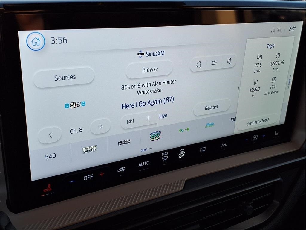 This vehicle includes the following features - Convenience Package (Front Driver/Passenger Seat Back Map Pockets, Heated 8-Way Power Driver's Seat, LED Fog Lamps, Premium Wrapped Steering Wheel, and Universal Garage Door Opener (UGDO)), Equipment Group 200A, 4-Wheel Disc Brakes, 6 Speakers, ABS brakes, Air Conditioning, Alloy wheels, AM/FM radio: SiriusXM, AM/FM Stereo, Auto High-beam Headlights, Automatic temperature control, Brake assist, Cloth w/Easy-to-Clean Front Bucket Seats, Compass, Delay-off headlights, Driver door bin, Driver vanity mirror, Dual front impact airbags, Dual front side impact airbags, Electronic Stability Control, Emergency communication system: SYNC 4 911 Assist, Four wheel independent suspension, Front anti-roll bar, Front Bucket Seats, Front Center Armrest, Front License Plate Bracket, Front reading lights, Fully automatic headlights, Heated door mirrors, Illuminated entry, Knee airbag, Low tire pressure warning, Occupant sensing airbag, Outside temperature display, Overhead airbag, Overhead console, Panic alarm, Passenger door bin, Passenger vanity mirror, Power door mirrors, Power steering, Power windows, Radio data system, Rear anti-roll bar, Rear Parking Sensors, Rear reading lights, Rear seat center armrest, Rear window defroster, Rear window wiper, Remote keyless entry, Security system, SiriusXM, Speed control, Speed-sensing steering, Speed-Sensitive Wipers, Split folding rear seat, Steering wheel mounted audio controls, SYNC 4 w/Enhanced Voice Recognition, Tachometer, Telescoping steering wheel, Tilt steering wheel, Traction control, Trip computer, Variably intermittent wipers, and Wheels: 17" Carbonized Gray-Painted Aluminum.
